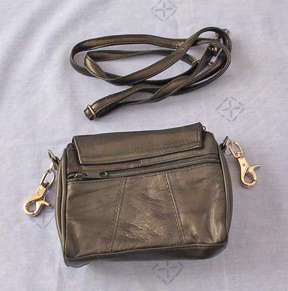 Ladies Leather Hook bag with Rose Motif & Stone 1 Front pocket