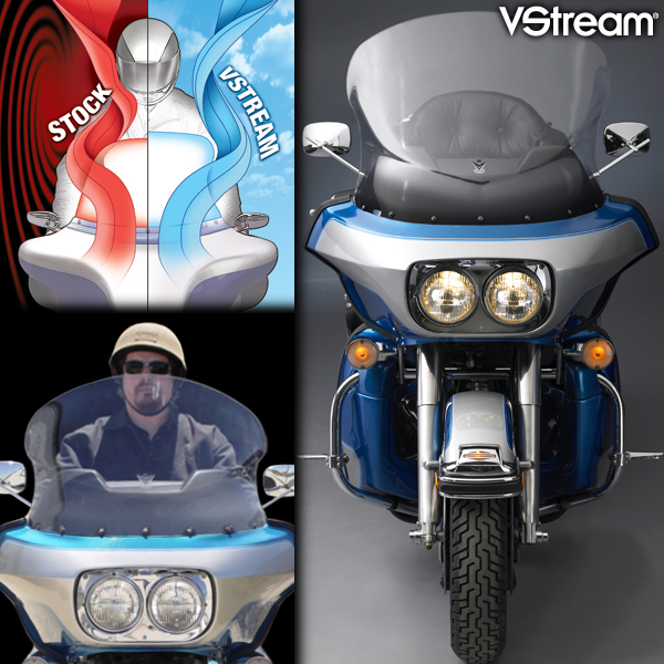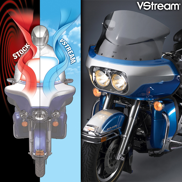 Riders who want a custom look and a lower profile will like our VStream Low and Ultra Low Windscreens. Both deliver VStream performance in a smaller, more compact size.