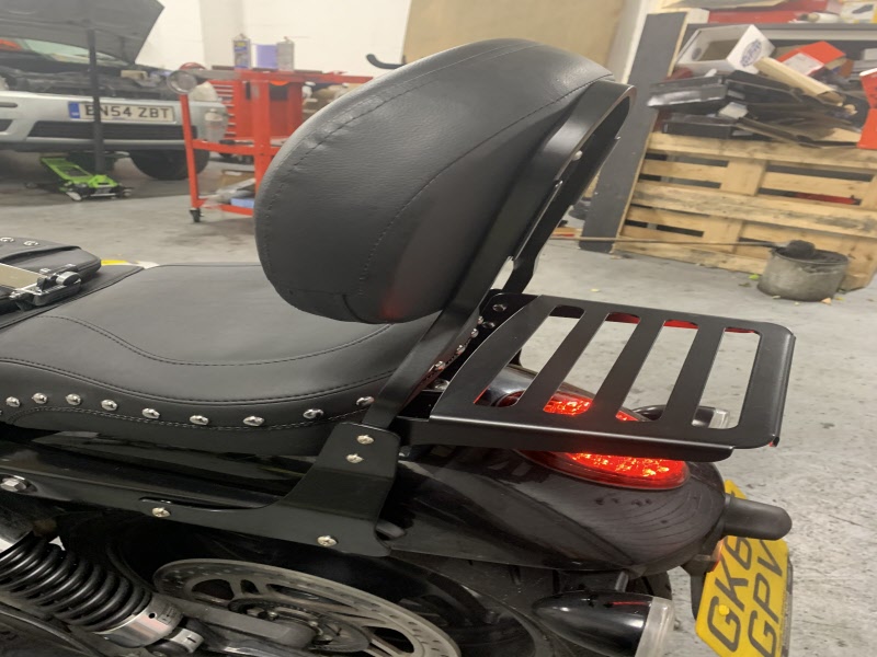 Thunderbird 1600 sissy-bar back-rest shown here on Thunderbird storm 1700 in black option made in Europe top quality  call Mike 01773835666