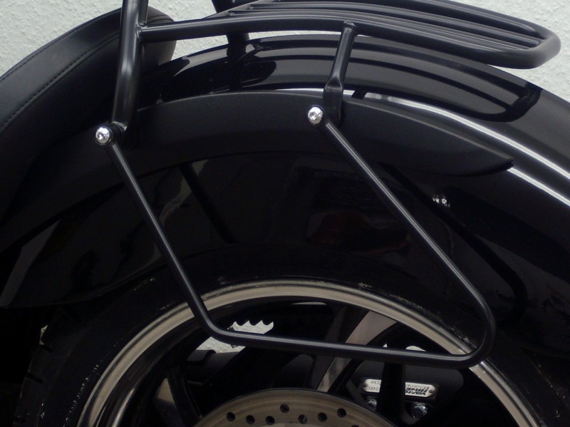 Magnum Saddlebag supports help keep your luggage safe and away from the back wheel. These supports look good and are unobtrusive. Victory Vegas Motorcycle Accessory