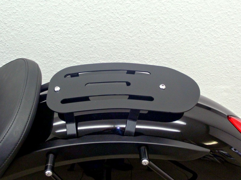 Formed steel Luggage rack Black Finish, Stylish curved plate for solo riders, fits instead of the passenger seat. Max. load 5 kg Victory Vegas Motorcycle Accessory
