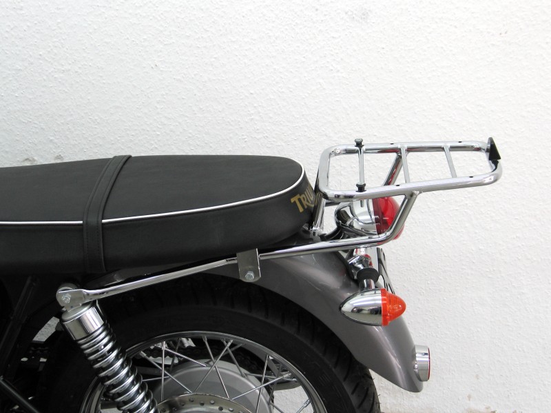 Luggage Carrier specially designed to hold Givi / Kappa Topcase, may also be used as standard rack, Bright Chrome finish. Note: Cases NOT Included. Triumph BonnevilleT100 Motorcycle Accessory