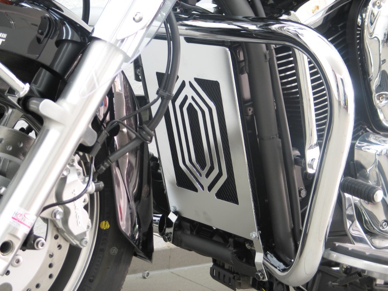 Radiator Cover, Manufactured from formed metal sheet, Silver finish, Magnum Kawasaki VN1700 Classic Motorcycle Accessory