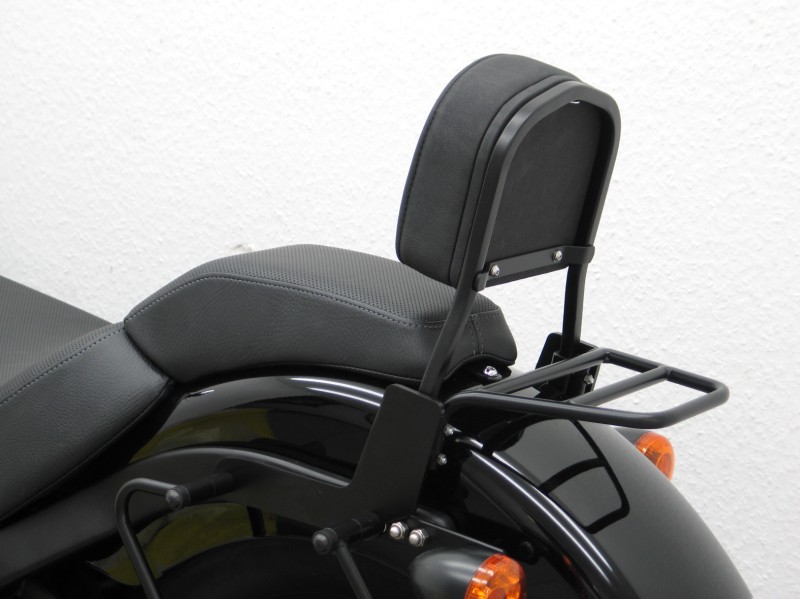 Sissy Bar Special 20 cm high, made of Black Finish square steel tubing, with side plates, or for mounting with the original side plates, with pad
