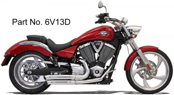 Victory Vegas Exhaust Bassani Victory Vegas 8-Ball Highball Pro Street Turn Out 6V13DFeatures stepped industrial chrome headers 1-3/4" - 1-7/8", oxygen sensor ports and plugs. 2¼" dia. x 12" baffles are not removable.