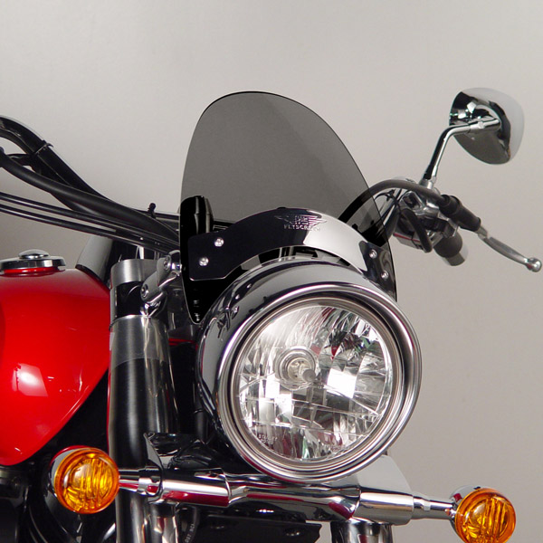 The Flyscreen is a stylish item for custom cruisers, muscle bikes and performance machines. The clean, minimal appearance and chrome trim plate will enhance the look of your bike. The quality Linking Arm fork mount system with countersunk screws offers a custom fit for motorcycles with open front forks.