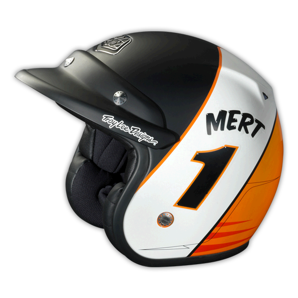 Mert starred in the documentary that has been called the most important motorcyle documentary ever made, so it is only fitting that it should have Merts customstyled helmet with Graphics cut so youcan apply them if required to look exactly like Merts own helmet wih no 1 logos and Mert included .also aletter to Bruce Brown the director of the Any Sunday Film