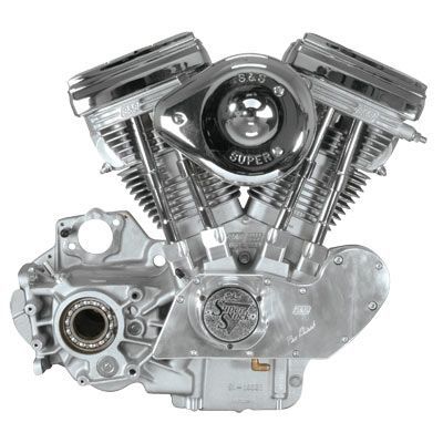 S&S SB100 engines come assembled with a natural aluminum finish. Crankcases have 1986-1990 (four-speed) style cam geometry and 1991-2003 (five-speed) style drive side. Primary and transmission components not included. This motor is for 1986-2003 Harley-Davidson Sportster models.