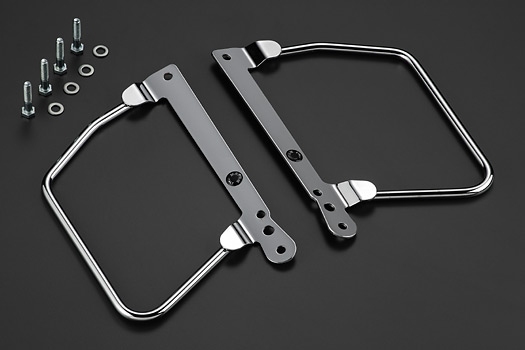 Harley Davidson Sportster Saddlebag Support Saddlebags casually thrown over the seat have the annoying habit of ending up in the rear wheel. With Restyling’s Bag Supports they won’t. High quality chromed steel, these protectors attach to existing mounting points. fits XL 1994 to date