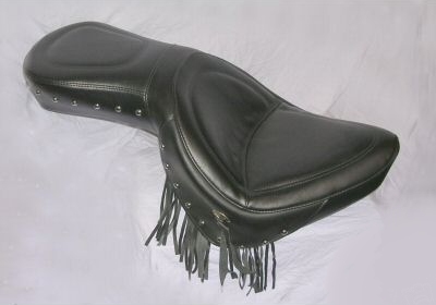 Comes standard with Saddlegel for both the driver and passenger. Wide driver bucket and contoured passenger platform provides extended comfort and support on long trips. Removable fringe, plated brass studs and german silver conchos standard.Superior back support,