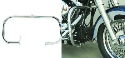 These are superb!! 1 1/4" Diameter Heavy Duty Tubing, Fully chrome plated, adds timeless style to your Harley and functional too!.