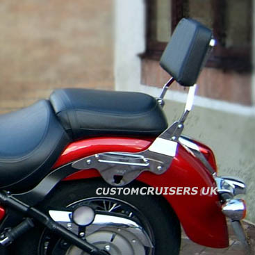 Motorcycle accessories: Complete Sissy Bar, including pad, with all necessary mounting materials. Steel and stainless steel with surface treated with steel and stainless steel chromed. The supplied sissy bar is mounted on existing mounting points on the bike.- Picture shows Sissybar on a VN900, with HAC Klicbag brackets also attached.