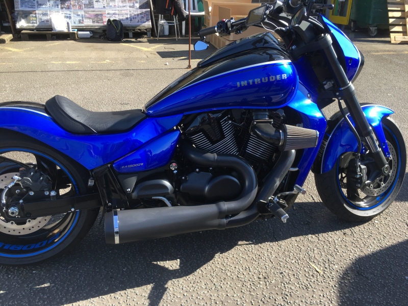 DG Hardkrome Suzuki M1800 VZR1800 M109R VPR Racing Pipe features shorter head pipes front and rear than any previous version. Shortened Muffler/Baffle Section, also shorter than any previous version, but still featuring HK's trademark 5"diameter 2 piece CNC Machined End Cap.