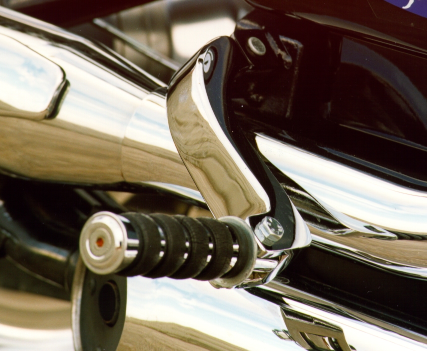 The original footpeg is removed, the extension fitted to the stock mounts, the stock footpeg then attaches back to the extension.