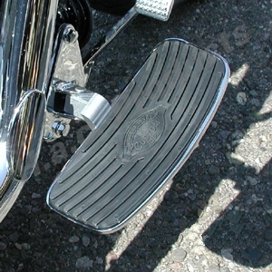 Complete set of Driver Floorboards, including all necessary mounting materials.  Alloy, steel and stainless steel.  Alloy chromed, and steel powder coated.  Included in box.  The supplied driver floorboards with the adapters replace the original footpegs.