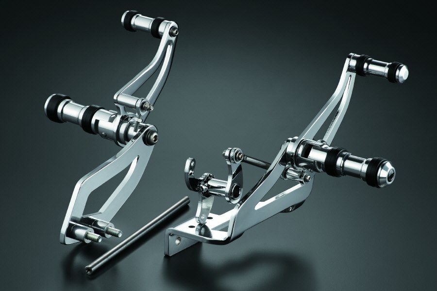 Polished, high strength, aluminium alloy, beautifully chromed and exceptionally designed, with fold up, billet aluminium footpegs. Includes all necessary mounting hardware for a perfect fit and a quick installation. Moves Drivers foot position 100mm forward