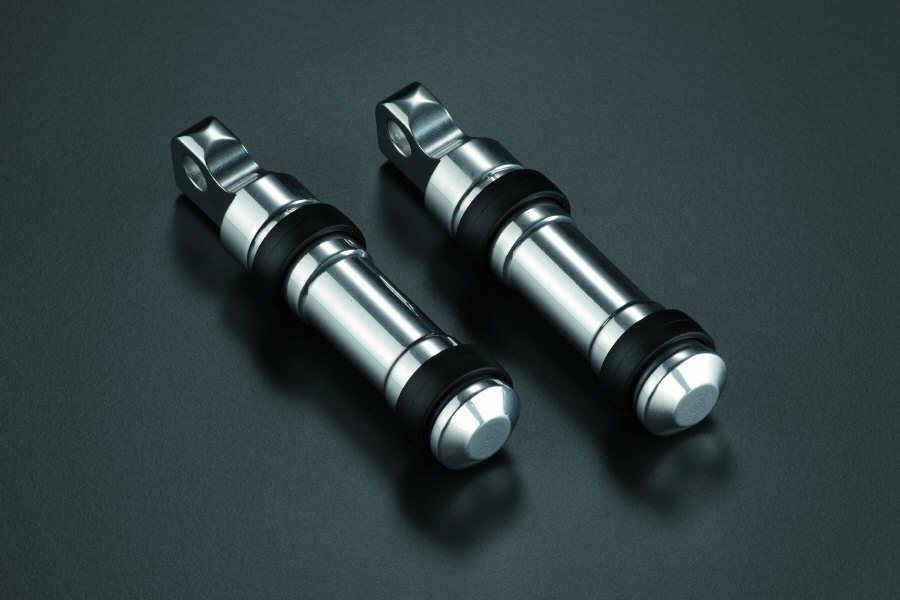 Passenger footpegs manufactured from billet aluminum,perfectly polished. These match the Mapam forward control kits. Sold in pairs.