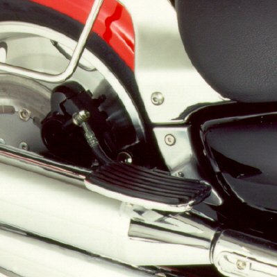 Complete set of Passenger Floorboards, including all neccessary mounting materials. Alloy, steel and stainless steel. Alloy chromed, and steel powder coated. The supplied floorboards with the adapters are exchanged against the original passenger footpegs.