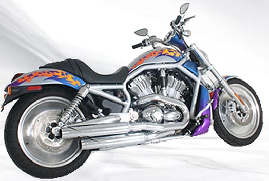 Harley Davidson VRSCA V-rod Samson Caliber High Performance Exhaust is now introducing the all new top of the line Caliber Slip-on Mufflers. These amazing mufflers were designed to fit all V-Rods and Street Rod. Every Caliber Exhaust has extra emphasis on performance, quality and style. The Slip-on Mufflers come complete with a one piece heat shield that looks better and provides superior protection. This particular heat shield was specifically designed to give the muffler a distinctive and classy look. Also included is a patented Veritech Baffle that constantly scavenges away spent fuel away from the engine while at the same time it increases exhaust gas velocity which greatly enhances low and mid-range torque. Chromed billet end caps, which are engraved "Caliber" on the end gives a quality finished look and lets everyone know that you have the highest quality motorcycle exhaust available.