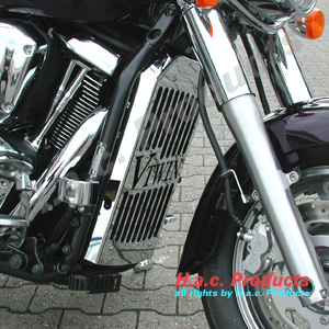 Kawasaki VN2000 Radiator Cover including all necessary mounting materials. Stainless steel or stainless steel chromed. The supplied radiator cover is mounted on the original mounting points, If applicable the original cover is replaced.HAC fits classic and custom models plus black variants too- 2 year guarantee stainlessteel chromed on top- NO RUST!! get one today