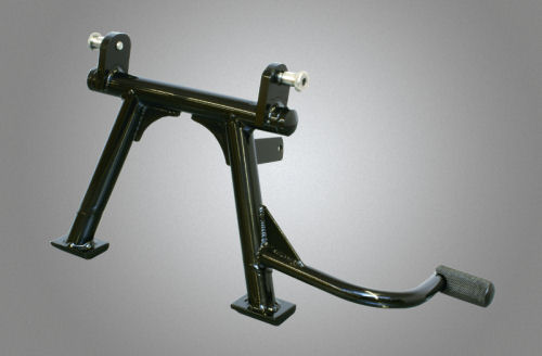 Machined and laser-cut to exact tolerances, hand welded and finished in black powder coat, this centerstand bolts directly to the frame and does not reduce cornering or ground clearance. It lifts the rear wheel 1” off the ground and has large foot pads to prevent sinking into the ground or soft asphalt. Includes a hide away, nylon-web strap grab handle for smooth, easy operation. Fits all years.