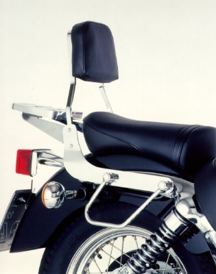 Suzuki VL125 Sissy Bar,also Suzuki VL250 sissy bar including standard pad, with all necessary mounting materials. Steel and stainless steel with surface treated with steel and stainless steel chromed. The supplied sissy bar is mounted on existing mounting points on the bike. If rack/ carrier is needed please order seperately see our other parts for this bike- comes with standard pad see optional pad upgrades too-