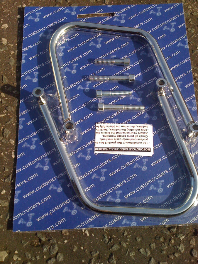 Honda VT125 Saddlebag Supports VT250 saddlebag supports HAC euro made Saddlebag Supports essential for your safety prevents your bags weraing on inside and going into the rear wheel , plus bags can be tied to them to prevent flapping around and see our saddleba clips too-that bolt to the bags to prevent any movement - no more bags melting on your exhaust!! Our supports are generally made in US  or Europe  ensuring we  keep jobs and industry is supported - they may be cheaper in far east but as you know chrome and  warranty often not as good or quality- call 01773835666 for advice on suitable bags foryour bike on 01773835666 or email  sales@customcruisers.com  thanks-Mike