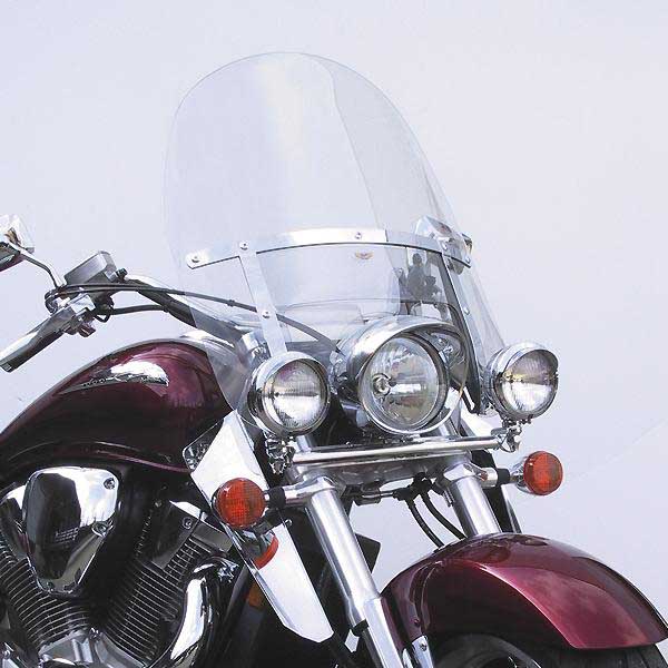 A perennial best seller, the Touring Heavy Duty™ offers plenty of height and width for larger riders. The classic look, meanwhile, ensures the shield enhances the front end of your bike. The perfect shield for touring or everyday riding. The Touring Heavy Duty™ and the Chopped Heavy Duty™ are Wide Frame windshields for bikes with widely spaced fork tubes. H: 20 in. to 21.5 in. (50.8cm to 54.6cm) W: 21.5 in. (54.6cm) This Windscreen requires a fitting kit. Some images are examples of this screen on other bike models).