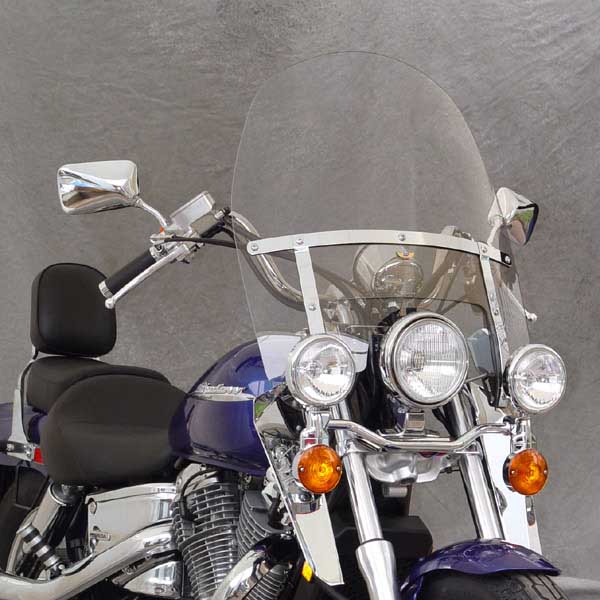 A perennial best seller, the Touring Heavy Duty™ offers plenty of height and width for larger riders. The classic look, meanwhile, ensures the shield enhances the front end of your bike. The perfect shield for touring or everyday riding. The Touring Heavy Duty™ and the Chopped Heavy Duty™ are Wide Frame windshields for bikes with widely spaced fork tubes. H: 20 in. to 21.5 in. (50.8cm to 54.6cm) W: 21.5 in. (54.6cm) This Windscreen requires a fitting kit. Some images are examples of this screen on other bike models).