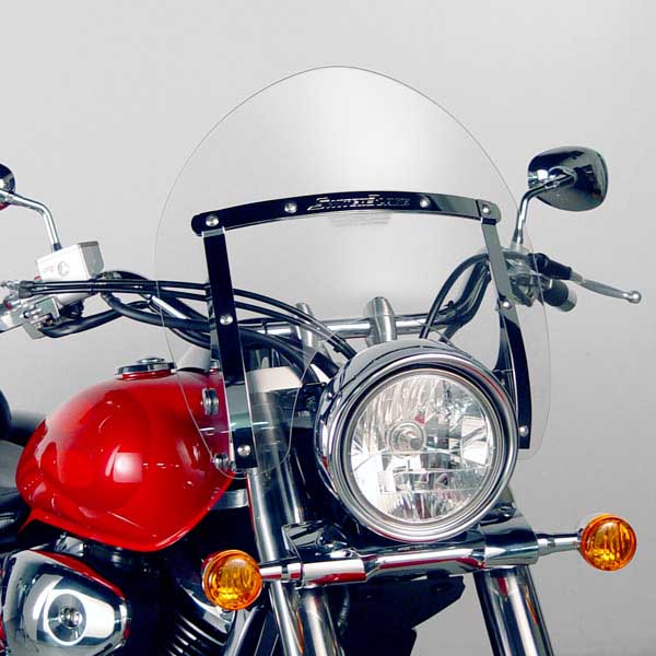 Cruiser riders can now enjoy unprecedented convenience, quality and function through our innovative new line of quick release windshields. The SwitchBlade system utilizes our new SwitchBlade mounting hardware, which allows riders to easily install, switch, or remove their windshield in less than 5 seconds -- with NO TOOLS. Switch styles... switch attitudes... with SwitchBlade!