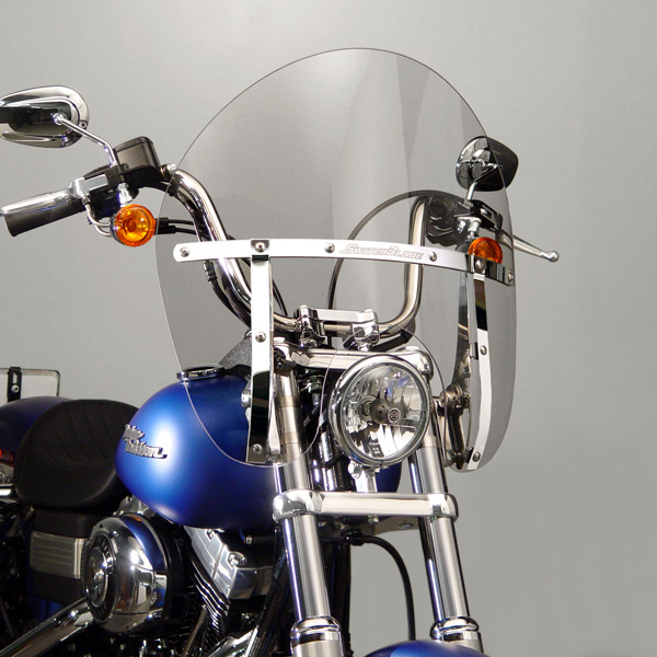 Harley-Davidson® and metric cruiser riders can enjoy unprecedented convenience, quality and functionality through an innovative line of quick release windshields, available in four sizes. The SwitchBlade® Windshields utilizes our SwitchBlade Mounting System, which allows riders to easily install, switch, or remove their windshield in less than 5 seconds -- with no tools! Switch styles... Switch attitudes... with SwitchBlade!