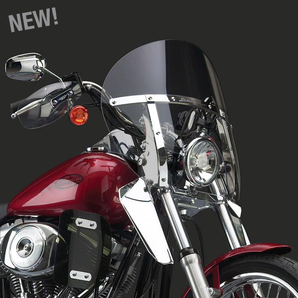 Harley-Davidson® and metric cruiser riders can enjoy unprecedented convenience, quality and functionality through an innovative line of quick release windshields, available in four sizes. The SwitchBlade® Windshields utilizes our SwitchBlade Mounting System, which allows riders to easily install, switch, or remove their windshield in less than 5 seconds -- with no tools! Switch styles... Switch attitudes... with SwitchBlade!