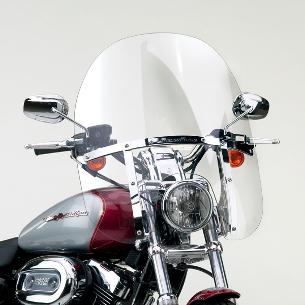 Harley-Davidson and metric cruiser riders can enjoy unprecedented convenience, quality and functionality through an innovative line of quick release windshields, available in four sizes. The SwitchBlade® Windshields utilizes our SwitchBlade Mounting System, which allows riders to easily install, switch, or remove their windshield in less than 5 seconds -- with no tools! Switch styles... Switch attitudes... with SwitchBlade!