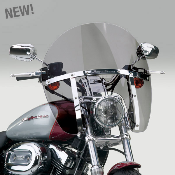 Harley-Davidson® and metric cruiser riders can enjoy unprecedented convenience, quality and functionality through an innovative line of quick release windshields, available in four sizes. The SwitchBlade® Windshields utilizes our SwitchBlade Mounting System, which allows riders to easily install, switch, or remove their windshield in less than 5 seconds -- with no tools! Switch styles... Switch attitudes... with SwitchBlade!