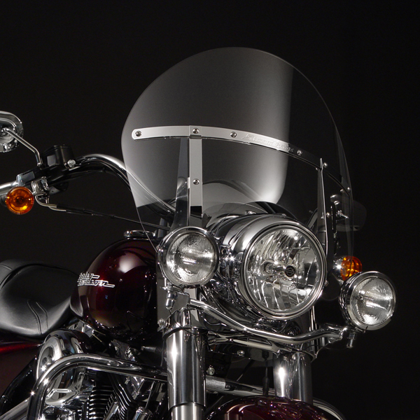 The new SwitchBlade Chopped windshield offers ample wind protection while still offering a clear view over the top of the windshield. Sleek and stylish with a classic look, the Chopped is an ideal choice for an every-season windshield. Screen material is 4.0mm Lexan® polycarbonate (the toughest windshield material available) with our exclusive Quantum™ coating (the hardest coating there is) -- brought together by National Cycle, the world's leader in windshield technology. ABE Approved. Harley riders can now enjoy unprecedented convenience, quality and functionality through our innovative new line of quick release windshields. The SwitchBlade system utilizes our new SwitchBlade mounting hardware, which allows riders to easily install, switch, or remove their windshield in less than 5 seconds -- with NO TOOLS. And, unique to the Harley-Davidson® SwitchBlade shields is a KEY LOCKING quick release. Enjoy the convenience of a quick release windshield with "Lock Solid" security -- only from National Cycle. Each SwitchBlade windshield and mount kit is model-specific. These are not "universal" fitments that work fine on some models and work poorly on others. When you order the SwitchBlade mount kit and any SwitchBlade windshield for your model motorcycle, you can be sure it will fit like it was custom made for your bike — because it was!