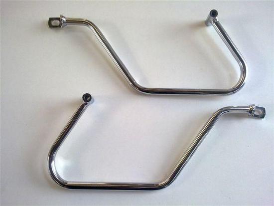 Honda VTX1300S Retro Saddlebag Supports Honda VTX1800 Retro saddlebag supports see our other for VTX1300C essential for your safety prevents your bags weraing on inside and going into the rear wheel , plus bags can be tied to them to prevent flapping around and see our saddleba clips too-that bolt to the bags to prevent any movement - no more bags melting on your exhaust!! Our supports are generally made in US or Europe ensuring we keep jobs and industry is supported - they may be cheaper in far east but as you know chrome and warranty often not as good or quality- call 01773835666 for advice on suitable bags foryour bike on 01773835666 or email sales@customcruisers.com thanks-Mike