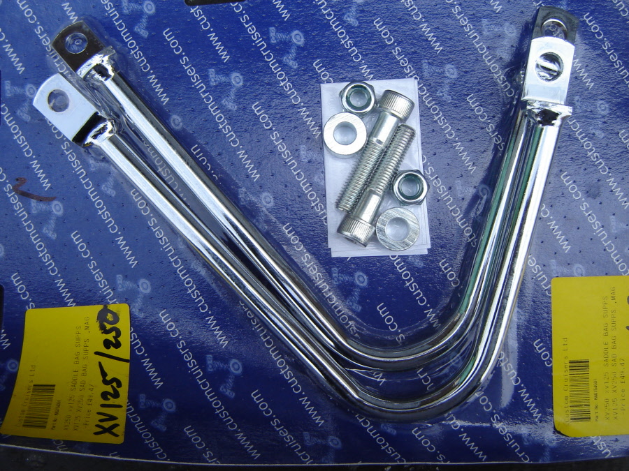Saddlebag Supports  for later models see other products essential for your safety prevents your bags weraing on inside and going into the rear wheel , plus bags can be tied to them to prevent flapping around and see our saddleba clips too-that bolt to the bags to prevent any movement - no more bags melting on your exhaust!! Our supports are generally made in US  or Europe  ensuring we  keep jobs and industry is supported - they may be cheaper in far east but as you know chrome and  warranty often not as good or quality- call 01773835666 for advice on suitable bags foryour bike on 01773835666 or email  sales@customcruisers.com  thanks-Mike
