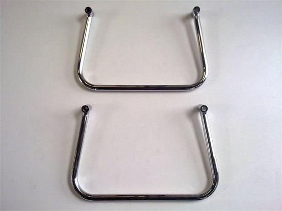 Saddlebag Supports  for later models see other products essential for your safety prevents your bags weraing on inside and going into the rear wheel , plus bags can be tied to them to prevent flapping around and see our saddleba clips too-that bolt to the bags to prevent any movement - no more bags melting on your exhaust!! Our supports are generally made in US  or Europe  ensuring we  keep jobs and industry is supported - they may be cheaper in far east but as you know chrome and  warranty often not as good or quality- call 01773835666 for advice on suitable bags foryour bike on 01773835666 or email  sales@customcruisers.com  thanks-Mike