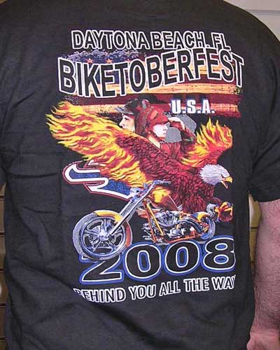 Black 100% Cotton Tee shirt with large Biketoberfest motif on the back and smaller motif on thr front.