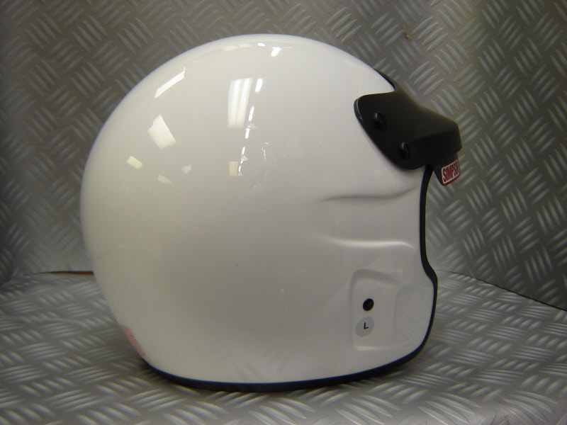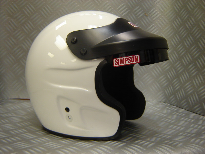 Simpson Cruiser Nascar Style openn face motorcycle Helmet fiberglass open face helmet offers great protection whilst Cruising around town couldn't get any better. Snell M2005 and DOT approved. Air vents, quick release chin strap Sun visor peak combined really stops the sun blinding you at sunrise or dusk slightly adjustable for height plus dual headset cut outs or comunication device pockets. A perfect way to relax. see our Cardo Bluetooth Intercomms .I have worn one of these for 15years now and found it to be the ultimate helmet giving great side protection and great built in nascar peak with Sun strip really stops the sun blinding you at dusk !This Helmet NOT officially Uk road legal or approved.