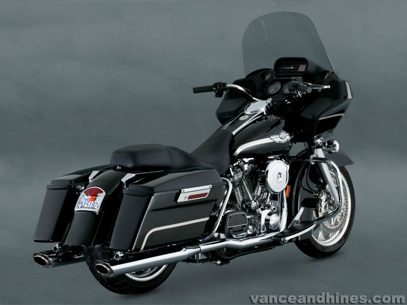 - Innovative rear muffler bracket hides attaching point under saddlebag