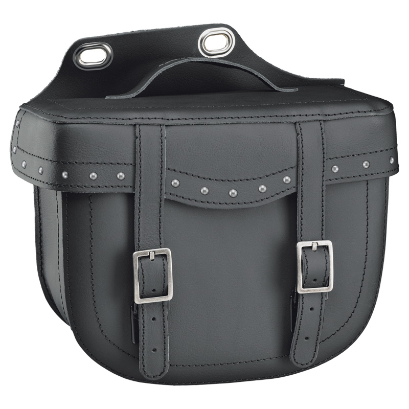 Held 004689-10.1 Cruiser Bulb motorcycle Saddle Bags motorbike panniers pr ,Click fittings lock bags to yoke under seat quick release Studded luggage, pannier, 2 Strap medium Size by Held Germany Top Quality leather construction with waterproof coating 2 buckle straps great looking add capacity and style to any cruisers