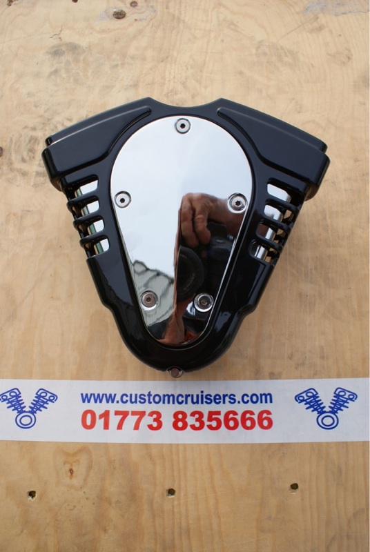 This rare discontinued Küryakyn air cleaners are now offered in UK from Custom Cruisers Ltd in stunning Gloss black with chrome trap door !