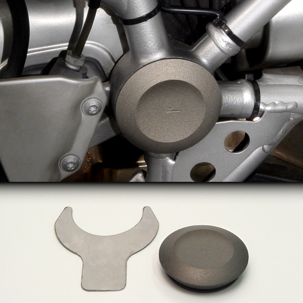 Cover the large hole at the right rear frame junction with this beautifully machined aluminium plug. It has a bead-blasted, durable hard-anodized grey finish to match the Boxer's cylinder head covers. Precise tolerances and a channelled rubber o-ring ensure a perfect and exact fit.