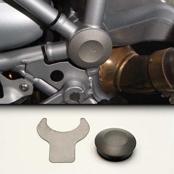 Replace the black plastic frame plug at the left rear frame junction with this beautifully machined aluminium plug. It has a bead blasted, durable hard-anodized grey finish to match the Boxer's cylinder head covers. Precise tolerances and a channelled rubber o-ring ensure a perfect and exact fit.