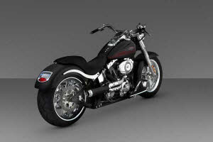 Roland Sands Design has teamed up with Vance & Hines to introduce a stylized, black ceramic 2-into-1 exhaust system. The RSD Tracker 2-into-1 Exhaust System™ fuses RSD styling and design with Vance & Hines racing performance. Seen on the Drag Specialties 2007 Fatbook cover, the pipe had overwhelming response and now is available.