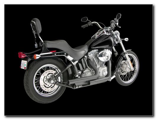 Short Staggered Straight Cut Black Ceramic Drag Pipes for 96+ cubic inch engines. Hooker Darksides are for those who have gone rat/raw or that just want to look a little more stealthy. These anti-bling pipes are coated in high temp black ceramic coating, a formula long-ago perfected by the aerospace industry. The matte black finish will always look good and stay easy to clean with its semi smooth surface texture. Darksides are available in Hooker's Softail Troublemakers and short-staggered Softail Rebels. Slam on a set of Hooker's chrome, black or silver anodized billet tips to finish them off with some added contrast(Not Supplied). Switch over to the Darkside