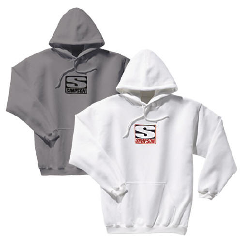 Simpson Hoody Sweatshirts Superman Sweatshirts This heavyweight sweatshirt is great for those cold nights at the track. This is a gotta-have item to keep you warm, comfortable and looking good. Embroidered "S" Simpson logo Heavyweight 80% cotton/20% polyester blend Size: L, & XL Only