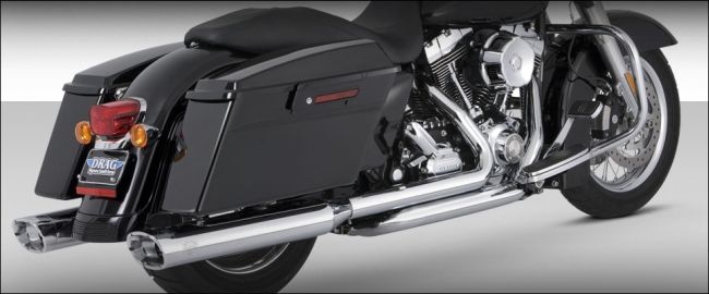 Dresser Duals head pipes give your motorcycle the traditional look, sound and performance you want. With 220° full-coverage heat shields conceiling its commanding 1-3/4” head pipes, you get blue proof, performance for miles and miles. In their newest form, the Dresser Duals eliminate the stock header, giving a clean, true dual function for the newer models. The new design eliminates the heat issues on the left side for the passenger and routes the hot exhaust gases below the footpeg to protect vital engine components from heat damage. For the most complete performance package, pair Dresser Duals with any of the Vance & Hines slip-on mufflers.