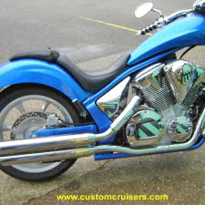Honda Fury VT1300-CX exhaust Vance and Hines 18421 Twin Slash Slip-on mufflers Stateline Interstate PC  18421 simple slip on exhausts easy to fit minimal costs retains Lambdas so no power commander Fi2000R  neeeded unless you change the air filter - see our Hypercharger kits plus Typhoon air filter kits too easy to fit and works great- Cobra FI2000r tuners and PowerFLO air cleaners filters too! plus Hyperchargers too! call 01773835666